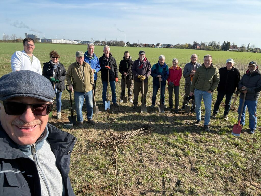In einer Gemeinschaftsaktion mit den Bürgern des Ortes rief der Heimatverein zu einer Baumpflanzaktion im Rahmen der 800 Jahrfeier auf. 80 Eichen für Dollbergen – für jedes Jahrzehnt eine Eiche, das ist die Idee. Rolf Kiesel freute sich als neuer Vorsitzender des Heimatvereins über die zahlreichen Helfer, die am 09.04.2026 in nur einer Stunde die Traubeneichen-Heister in einer Größe von 120-150 cm in den Boden einbringen konnten.