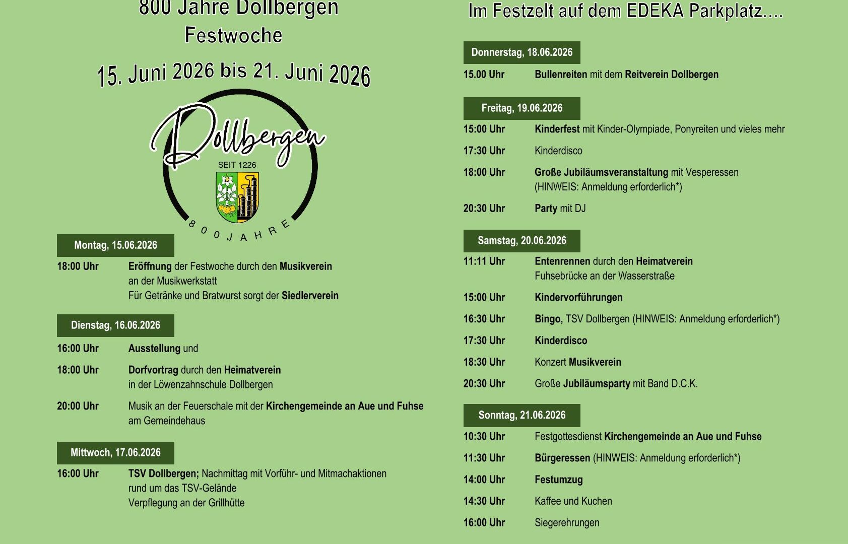 Hier ein kompletter Überblick der Festwoche zu unserem 800jährigen Jubiläums!